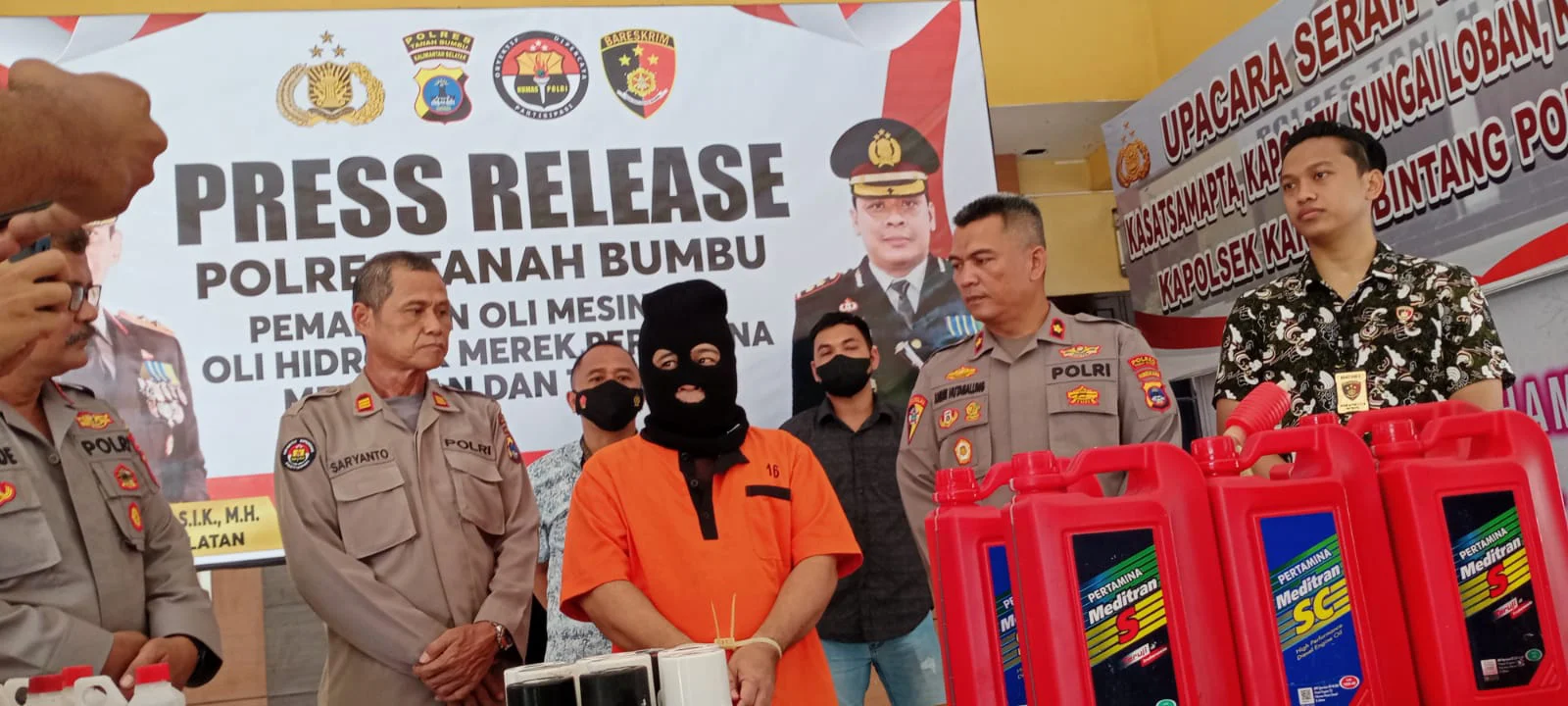 Kapolres Tanbu, AKBP Tri Hambodo melalui Kabag OPS, Kompol Andri Hutagalung, didampingi Kasi Humas, AKP Saryanto dan Kanit Tipidter Satreskrim, Ipda Anzhari Mattenete dalam keterangan pers di Mapolres Tanbu, Kamis (8/12/2022) mengungkapkan, pihaknya telah mengamankan 1 orang tersangka dalam perkara pemalsuan oli tersebut.