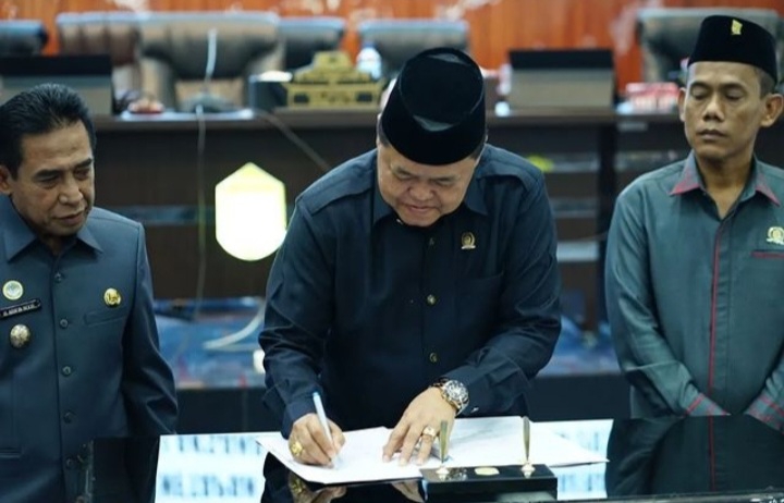WAKIL Ketua DPRD Banjarmasin, Matnor Ali menandatangani nota kesepakatan Penetapan Rancangan Peraturan Daerah tentang Pertanggungjawaban Pelaksanaan APBD Tahun Anggaran 2022.