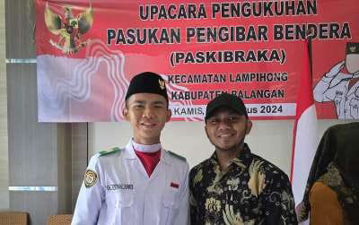 PARINGIN - Anggota DPRD Kabupaten Balangan Muhammad Syaibani menghadiri pengukuhan Paskibraka Kabupaten Balangan, Kamis (15/8/2024).